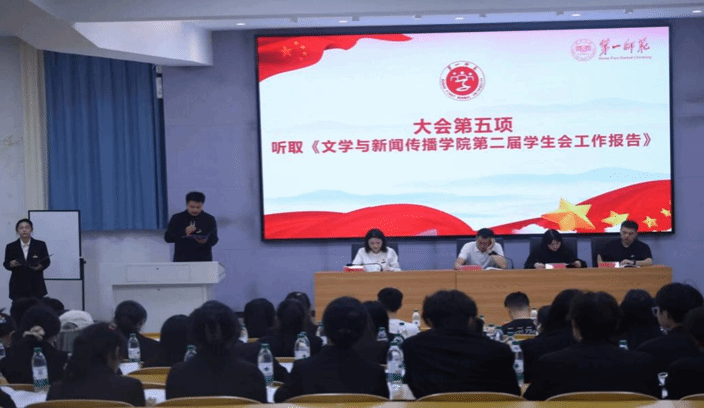 第二届学生会执行主席邓宝彬代表第二届学生会作题为《厚德博学担使命,文以明道启新章,在服务文化强国建设中彰显文传学子的青春担当》的工作报告。报告指出,学生会聚焦思想引领、组织改革等六大领域体系化推进工作,在强化价值引导、激发组织活力、服务成长成才等方面成效显著,为88看球