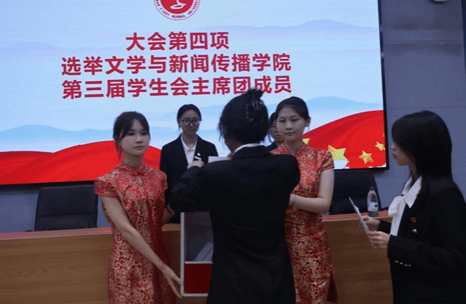 第三届学生会主席团成员:曾琳、陈玉湘、滕佳。同时,宁悦等15名同学当选为88看球